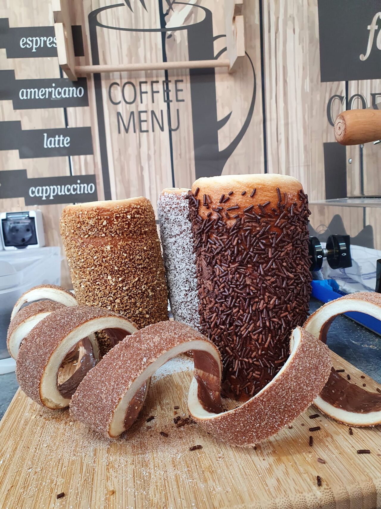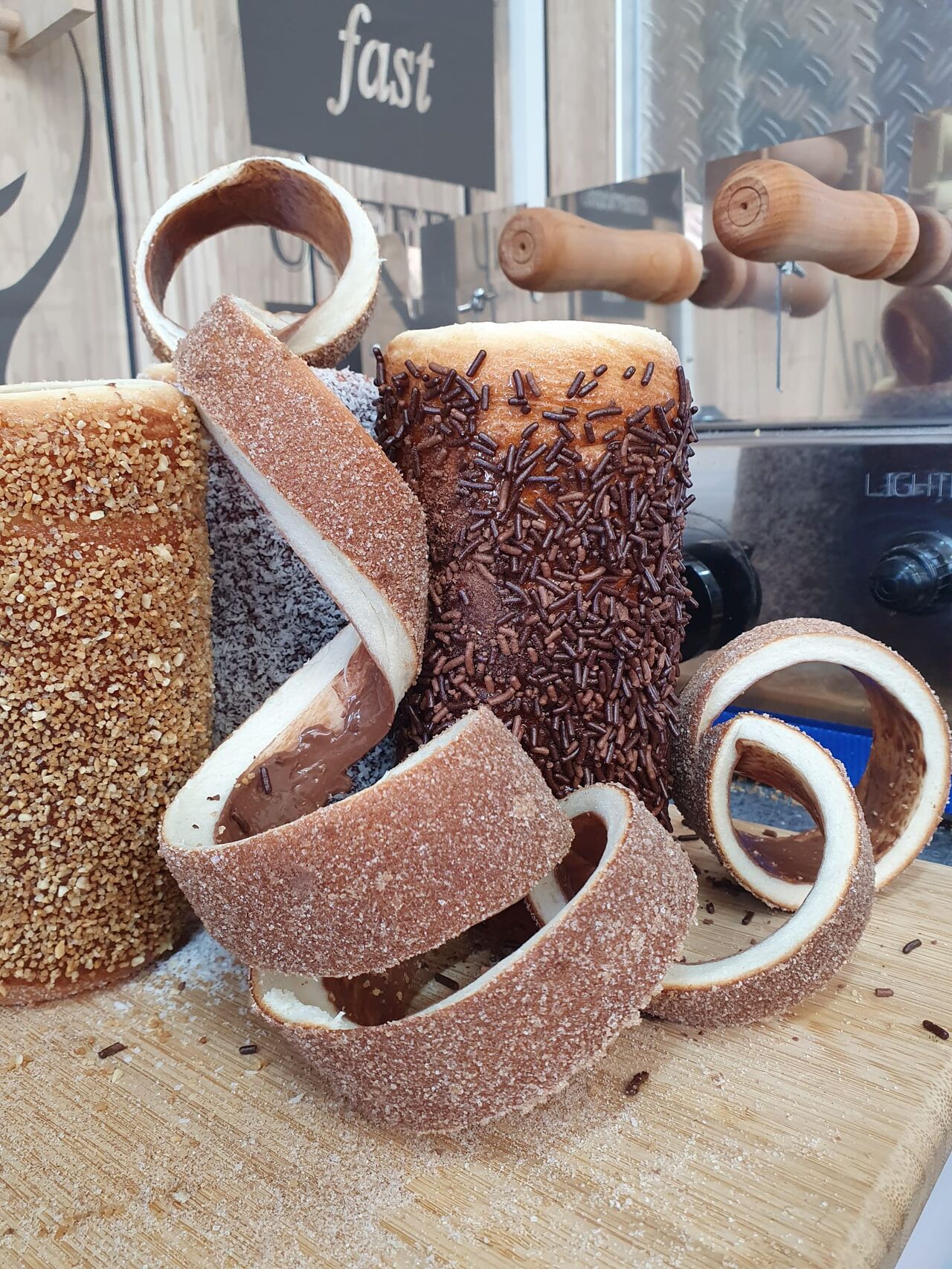 U bent van harte welkom bij Cake and Roll om kennis te maken met de overheerlijke Kurtosh kalach (Chimney cakes, Schoorsteenkoek), die van origine afkomstig zijn uit Hongarije. We bereiden ze in uw bijzijn vers en op dezelfde traditionele wijze. Eveneens verkopen wij softijs, koffie, cappuccino en diverse frisdranken. We zijn zuinig op ons milieu en hebben er daarom voor gekozen, dat we al onze gerechten in milieuvriendelijke verpakkingsmaterialen aanbieden. Aan u alleen het verzoek om deze na gebruik in de hiervoor bestemde container te deponeren.